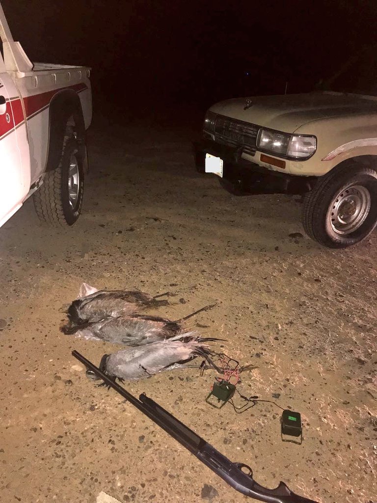 وفي منطقة مكة المكرمة، تمكنت قوة حماية المناطق المحمية التابعة للهيئة من ضبط مخالفين مارسوا صيد طيور الرهو المهاجرة في منطقة حظر الصيد.