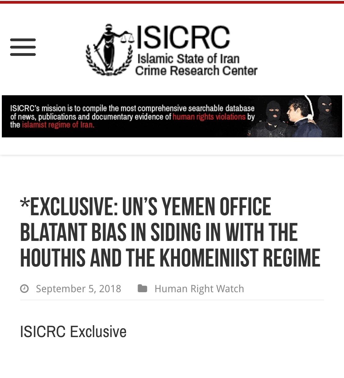 المركز البحثي لرصد جرائم نظام الملالي ISICRC، كشف من خلال مواد إعلامية انحياز الأمم المتحدة للملالي والحوثيين في الأزمات الإنسانية باليمن، حيث قال: إنه قبل بضعة أيام، حصلت الأمم المتحدة على مقطع فيديو يُظهر تعرض شاحنة تابعة لبرنامج الأغذية العالمي للأمم المتحدة لهجوم بالقذائف، وتضمن المقطع أصوات المتمردين الحوثيين وهم يتحدثون باللغة العربية ويصيحون: “الموت لأميركا.. الموت لإسرائيل.. اللعنة على اليهود”.