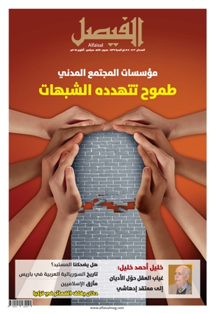 يسلط العدد الجديد من مجلة الفيصل، الضوء على مؤسسات المجتمع المدني، حيث حمل ملف العدد عنوان: مؤسسات المجتمع المدني.. طموح تتهدده الشبهات، وذلك انطلاقاً من الحاجة الملحة لمثل هذه المؤسسات في الوطن العربي، فلا دولة مدنية بلا مؤسسات مجتمع مدني، كما أنه لا مجتمع مدني في غياب الدولة المدنية، على أن الملف يتصدى للتحديات التي تواجه هذه المؤسسات، وأيضا يتعرض للاتهامات التي تلاحقها من ناحية علاقتها بالغرب. وقد شارك في كتابة الملف نخبةٌ من الكتاب والباحثين العرب، مثل: تركي الحمد، حسن مدن، نهلة الشهال، محمد اليحيائي، منير كشو، أماني قنديل، سامح إسماعيل، عبدالرحمن الحبيب، وجعفر الشايب. كما تضمن العدد الجديد باقة من المواد الثقافية والفنية المتنوعة شملت مجالات مختلفة، إضافة إلى النصوص الأدبية من نصوص شعرية وقصص قصيرة.