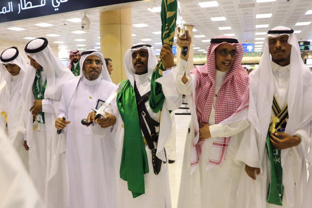 كما استقبلت مطارات الرياض مسافري مطار العاصمة بفن العرضة، الذي يعد أحد أهم القيم الأصيلة في الموروث الثقافي السعودي.