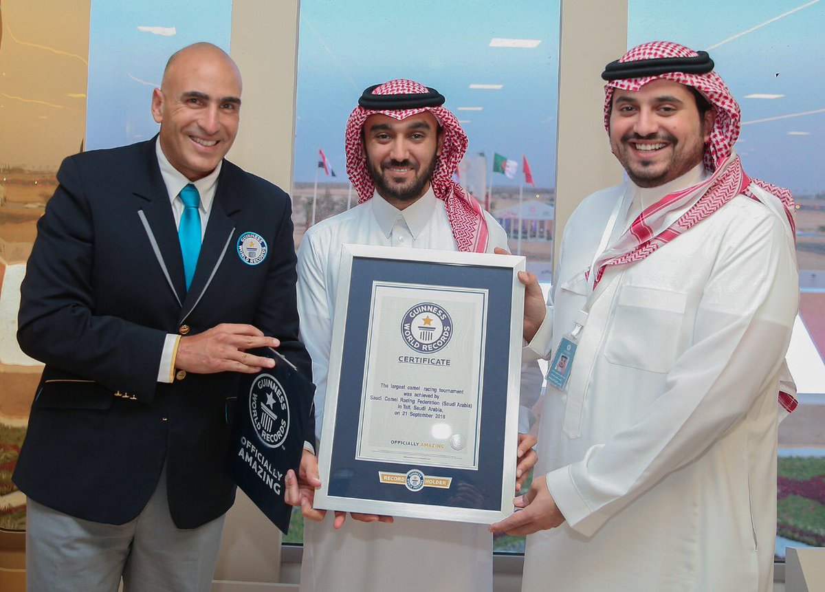 وتسلم الأمير فهد بن جلوي بن عبدالعزيز بن مساعد، شهادة غينيس مِن ممثلها أحمد جمال الدين، وذلك في حضور الأمير عبدالعزيز بن تركي الفيصل، نائب رئيس مجلس ادارة الهيئة العامة للرياضة.