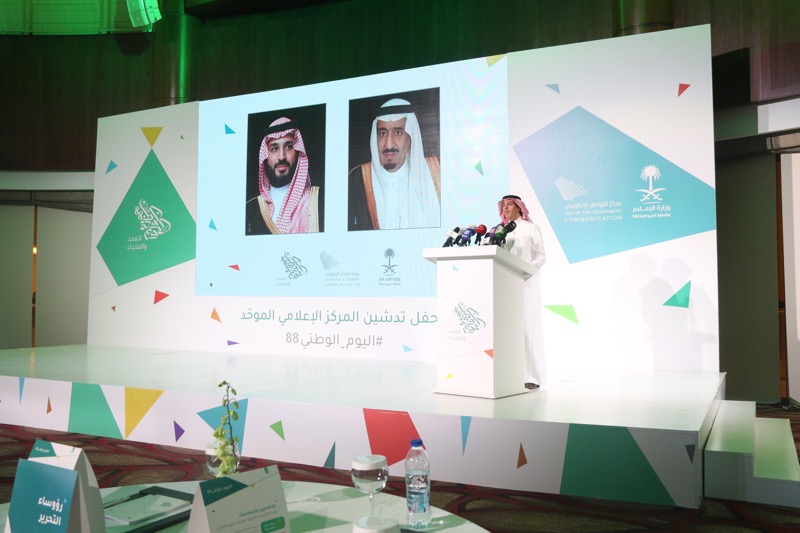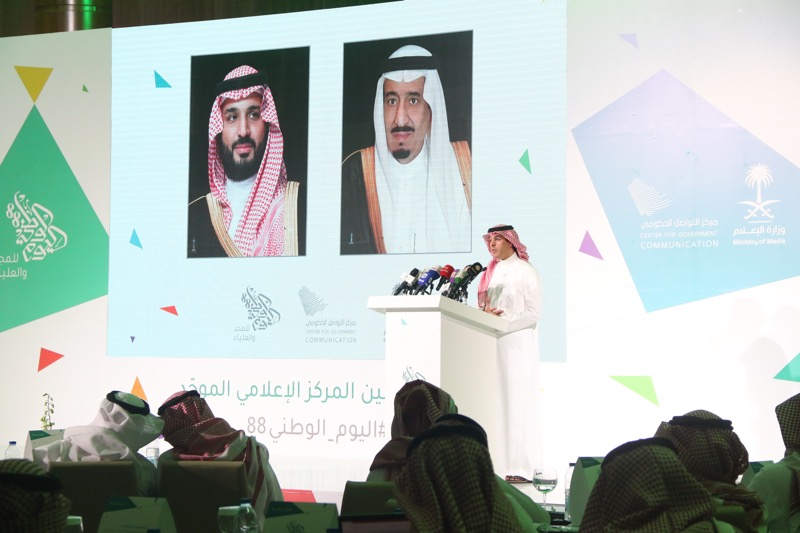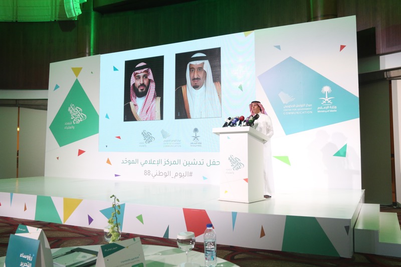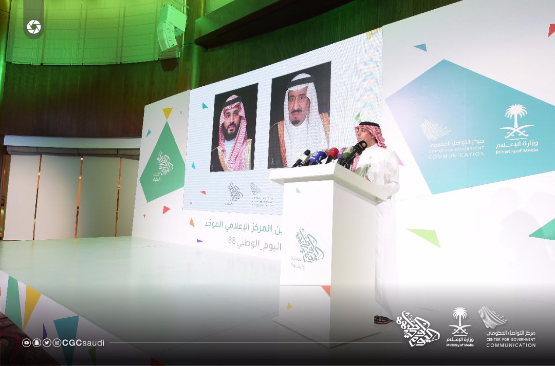 أعلن معالي وزير الإعلام الدكتور عواد بن صالح العواد اليوم، عن تدشين المركز الإعلامي الموحد لليوم الوطني الـ 88، وذلك في حفل أقيم في مدينة الرياض، حضره عدد كبير من المسؤولين والإعلاميين والصحفيين، بالإضافة لقيادات وزارة الإعلام، والمتحدثون الرسميون للجهات الحكومية المشاركة.