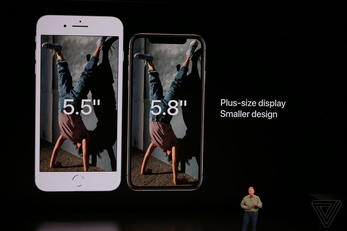 واستعرض فيل شيلر، نائب رئيس الشركة للتسويق هاتف آيفون XS الجديد، والذي سيأتي بالألوان الذهبي والفضي والرمادي، وسيتوفر بخيارين لشاشات العرض من قياس 6.5 و5.8 إنشات.