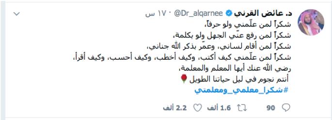 تضمنت المبادرة إطلاق هاشتاق (#شكرا_معلمي_ومعلمتي) تصدر الترند الأول في السعودية بأكثر من ٦٢.٨ ألف تغريدة، شارك فيه عدد من الشخصيات والجهات البارزة منهم: أ. مبارك العصيمي المتحدث الرسمي لوزارة التعليم،د. عايض القرني، المركز الوطني للتعليم الإلكتروني، د. خالد النمر، نادي الشباب السعودي.