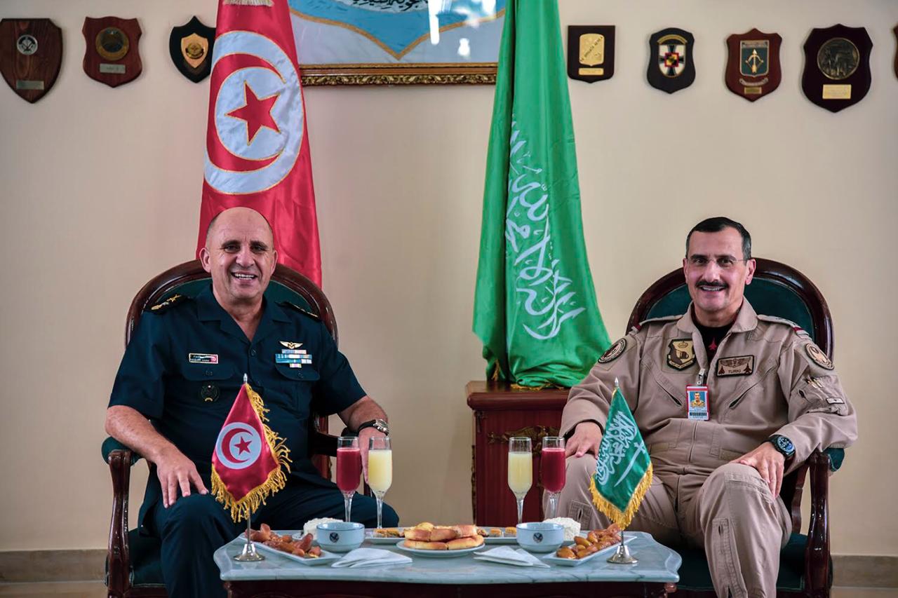 وصل اليوم سمو قائد القوات الجوية الملكية السعودية، الفريق الركن تركي بن بندر بن عبدالعزيز، إلى جمهورية تونس الشقيقة، حيث كان في استقباله رئيس أركان جيش الطيران التونسي أمير اللواء محمد الحجام وسفير خادم الحرمين الشريفين في جمهورية تونس محمد بن محمود العلي والملحق العسكري السعودي لدى تونس العميد الركن خالد بن محمد السهيان وعدد من ضباط الجانبين، حيث رعى سموه اليوم اختتام المناورات الجوية السعودية التونسية المشتركة في قاعدة (سيدي أحمد الجوية) في بنزرت.