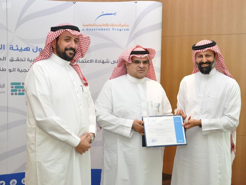 جاء ذلك خلال حفل تسليم شهادة الاعتماد للهيئة وتكريم منسوبيها المساهمين في صناعة هذا الإنجاز، الذي عقد بمقر الهيئة أمس، حيث استلم معالي رئيس لجنة التعاملات الإلكترونية في الهيئة شهادة الاعتماد من برنامج “يسّر” ثم سلم معاليه والمهندس العسيري شهادات الشكر والتقدير لأعضاء فريق البنية المؤسسية بالهيئة.
