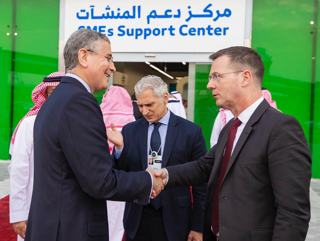 واطلّع معالي الوزير أثناء زيارته على جاهزيّة المركز وطريقة خدمة المستفيدين منه بحضور أكثر من 140 منشأة، وقدّمت منشآت بدورها شرحًا عن طُرق تقديم الخدمات والمنتجات وفتح آفاق الدعم والتمكين للمنشآت الصغيرة والمتوسطة بالإضافة إلى توفيرِ عددٍ من ورش العمل ومراكز التدريب والإرشاد، والتقى القصبي أثناء جولته بعددٍ من أصحاب المنشآت الصغيرة والمتوسطة وعددٍ من المرشدين والمدربين واستمع لاقتراحاتهم تجاه دعم هذا القطاع الحيوي المُساهم بدورِه في تحقيق أهم أهداف رؤية 2030.