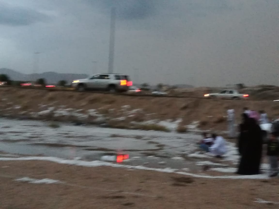 ووثق عدد من المتنزهين المناظر الخلابة وتساقط كميات البرد بكاميراتهم وتداولها عبر منصات مواقع التواصل الاجتماعي.
