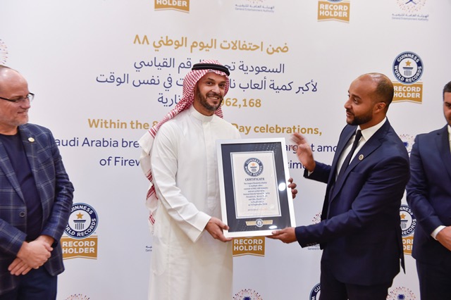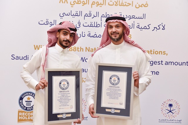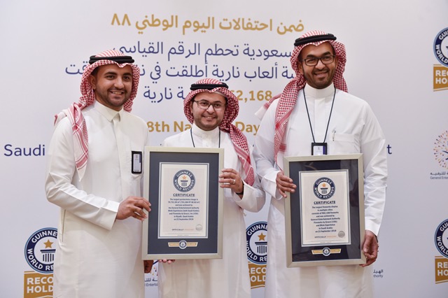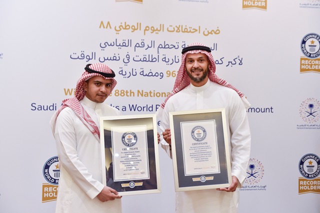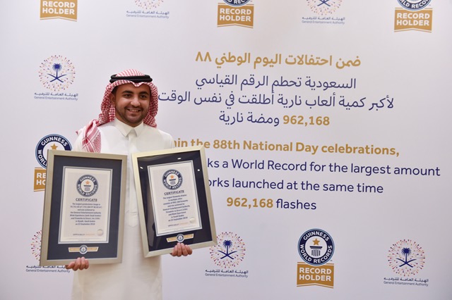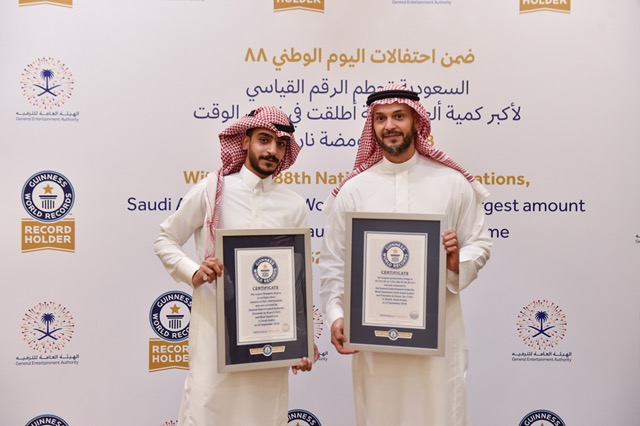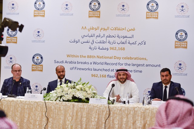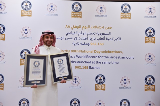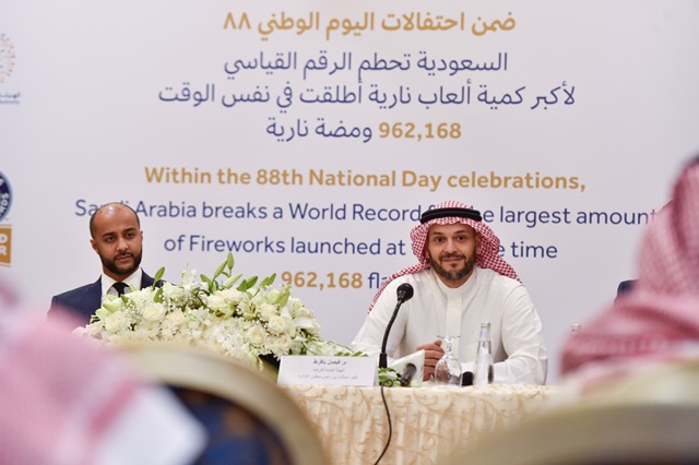 جاء ذلك خلال مؤتمر إعلان تحطيم المملكة الرقم القياسي لأكبر كمية ألعاب نارية أطلقت في نفس الوقت ضمن فعاليات اليوم الوطني 88؛ حيث أطلقت 962.168 ومضة نارية.