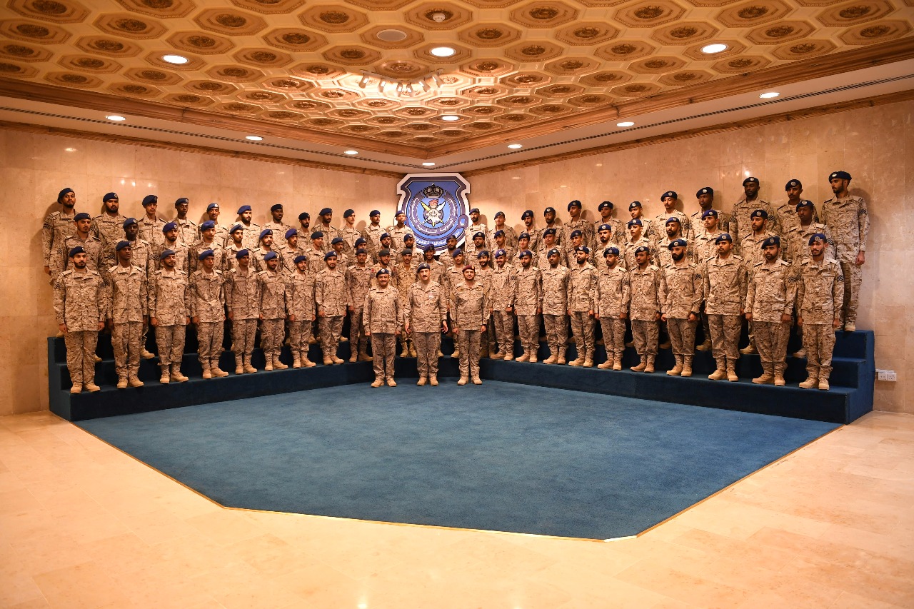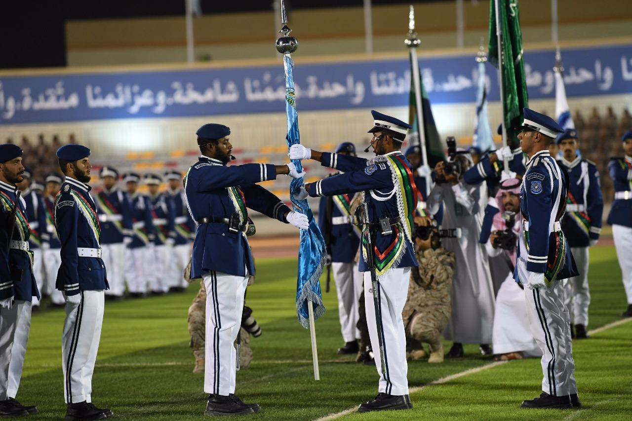 بعد ذلك بدأ العرض العسكري، ثم تم تسليم الراية من الرقيب السلف إلى الرقيب الخلف، عقب ذلك ألقى قائد جناح الطلبة بالنيابة العقيد صقر بن سعد المطيري القسم على الخريجين، ثم أعلنت نتائج الدورة، حيث تشرف الأوائل والمتفوقون من الطلبة الخريجين بتسلم جوائزهم من راعي الحفل، ثم عزف السلام الملكي، بعدها التقطت الصور التذكارية للطلبة الخريجين مع سمو قائد القوات الجوية.