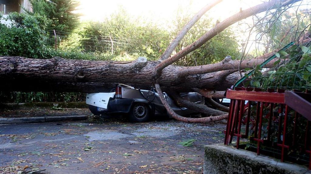 صور.. رياح عاتية تقتلع الأشجار وتقطع خطوط الكهرباء في إيطاليا