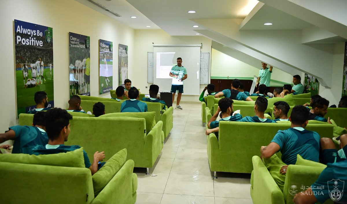 عقد المدرب الأرجنتيني بابلو غويدي اجتماعًا بلاعبي الفريق الأول لكرة القدم بالنادي الأهلي قبيل انطلاقة الحصة التدريبية، مساء اليوم الأربعاء.