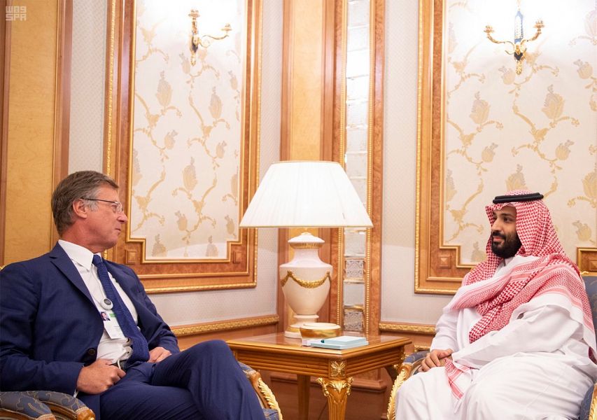 التقى صاحب السمو الملكي الأمير محمد بن سلمان بن عبدالعزيز، ولي العهد نائب رئيس مجلس الوزراء وزير الدفاع، على هامش مبادرة مستقبل الاستثمار، رئيس شركة فيرتي البيرتو قلاسي، بحضور المشرف على صندوق الاستثمارات العامة الأستاذ ياسر الرميان، وذلك في مقر انعقاد مبادرة المستقبل بمدينة الرياض.