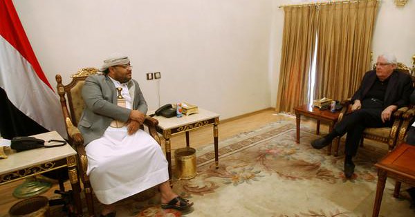 ولا أدل على ذلك من ظهور المطلوب الثالث على قائمة الأربعين إرهابيًا، محمد علي الحوثي، خلال لقائه بالمبعوث الأممي، جالساً على كرسي، وإلى جانبه طاولة تحتها سلاح رشاش.