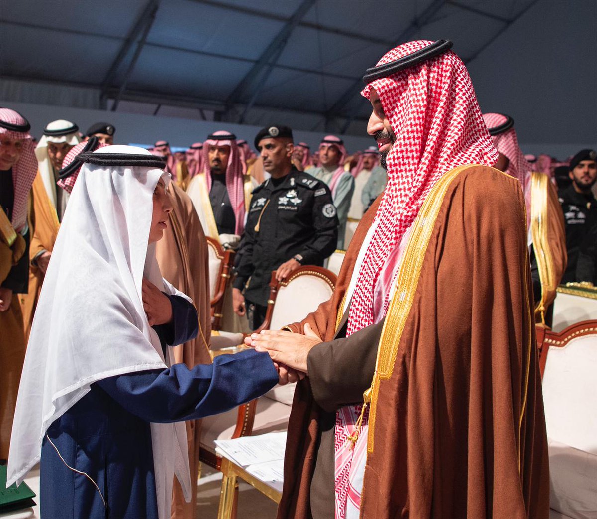 وقال سموه :” إنه ليومٌ تُعَانِقُ فيه الأرضُ السماء، وتتبسّمُ فيه الشمسُ والأنواء، ببهاءِ قدومِكُم، وَشَرَفِ وصولِكُم”.