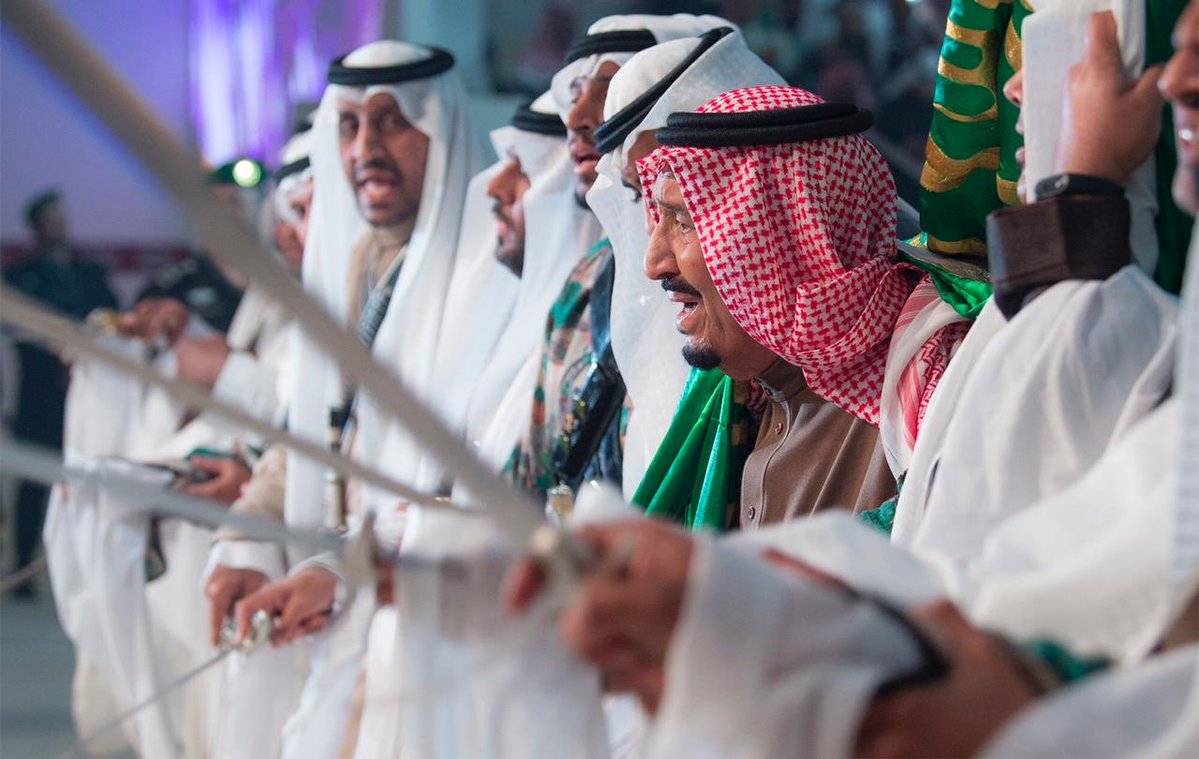 #خادم_الحرمين_الشريفين يشارك في #العرضة_السعودية.#الحدود_الشمالية_ترحب_بالملك pic.twitter.com/wiC1dhr4qZ