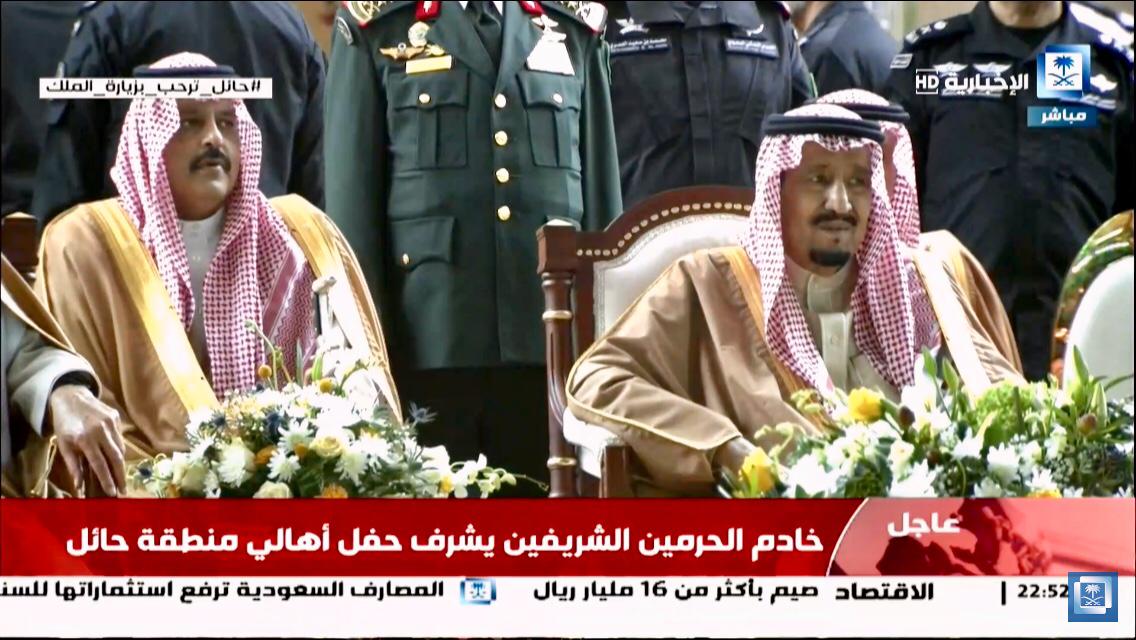 وفور وصول خادم الحرمين الشريفين مقر الحفل في منتزه المغواة، كان في استقباله- رعاه الله- صاحب السمو الملكي الأمير عبدالعزيز بن سعد بن عبدالعزيز أمير منطقة حائل، وصاحب السمو الملكي الأمير فيصل بن فهد بن مقرن بن عبدالعزيز نائب أمير منطقة حائل.