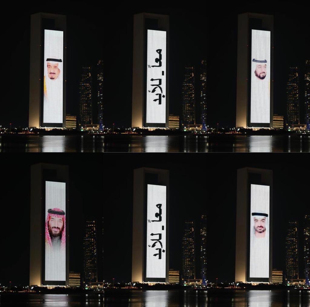 وانتشرت الأعلام واللافتات الترحيبية والألوان الخضراء وصور القيادة، في جميع الميادين والشوارع في الإمارات، وفي أبو ظبي خاصة، احتفاء بالضيف الكبير الأمير محمد بن سلمان.