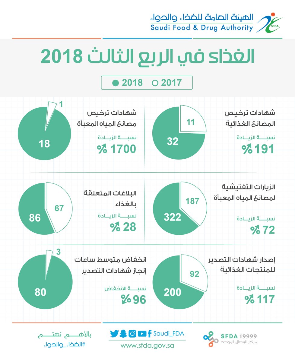 كما أشارت الهيئة عبر حسابها الرسمي على ”تويتر”، إلى انخفاض متوسط ساعات إنجاز شهادات تصدير المنتجات الغذائية بنسبة 96% خلال الربع الثالث 2018.