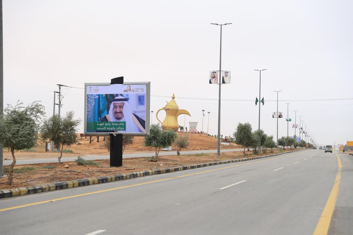 تزينت شوارع وميادين منطقة الجوف، ابتهاجاً بالزيارة الكريمة لخادم الحرمين الشريفين الملك سلمان بن عبدالعزيز.