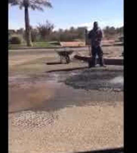 سخرية من رصف وسفلتة الطريق بطریقة بدائیة في حائل
