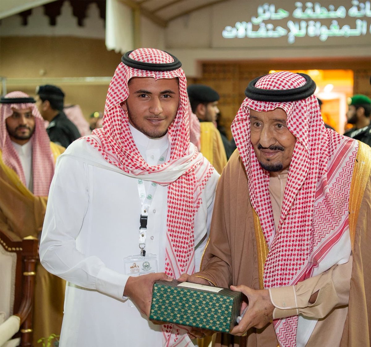 ثم سلم خادم الحرمين الشريفين عددا من المتميزين والداعمين من أبناء منطقة حائل جوائزهم ، وهم :