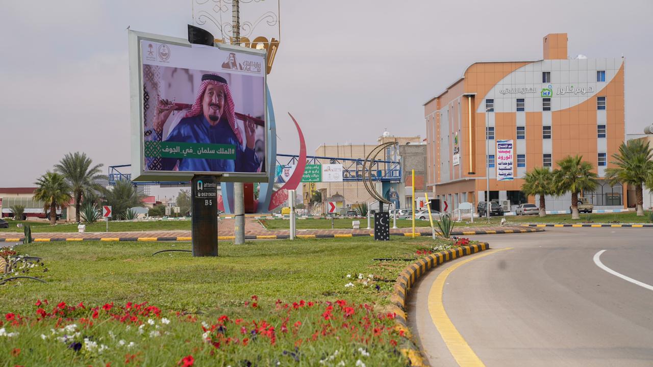 وزينت الأمانة مباني ومقرات الإدارات الحكومية والمعالم والميادين الرئيسية بمنطقة الجوف بصور خادم الحرمين الشريفين الملك سلمان بن عبدالعزيز وولي العهد الأمير محمد بن سلمان بن عبدالعزيز.
