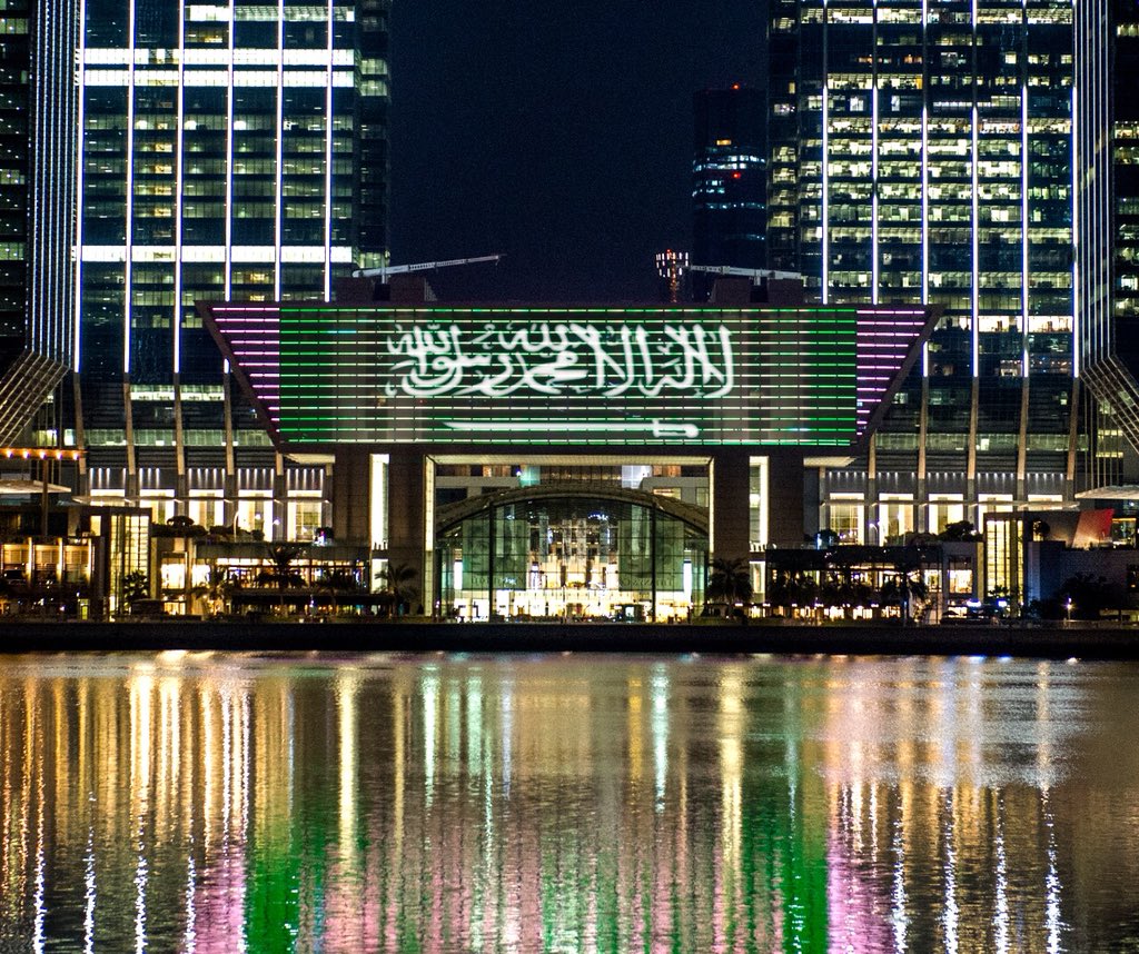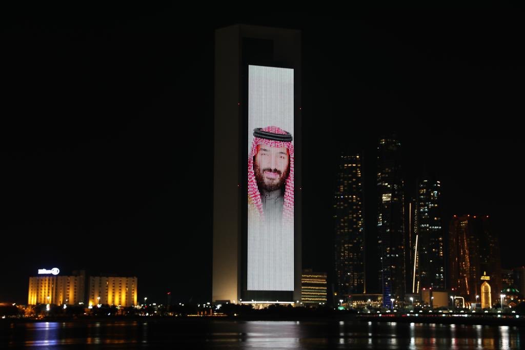 تزينت معالم أبوظبي بألوان علم المملكة المملكة العربية السعودية، ترحيباً بزيارة الأمير محمد بن سلمان ولي العهد نائب رئيس مجلس الوزراء، وزير الدفاع للإمارات.