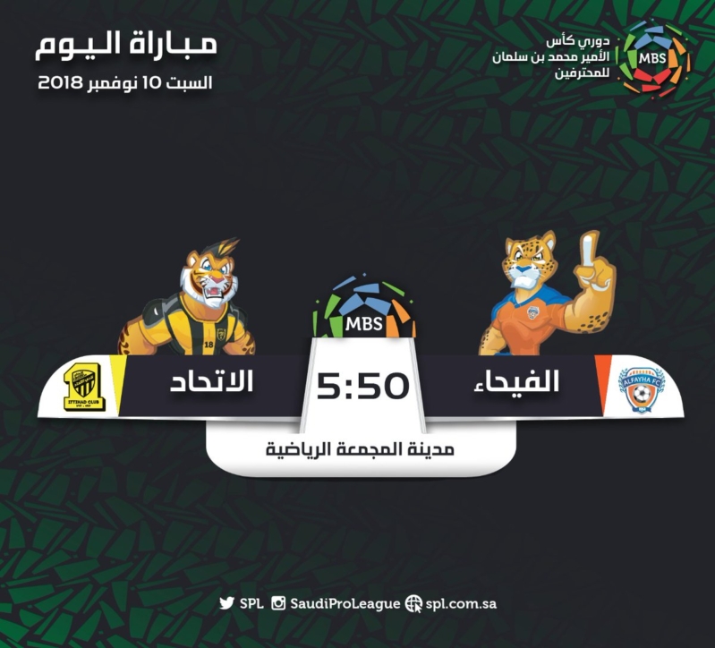وتحتضن مدينة المجمعة الرياضية مباراة الفيحاء ضد الاتحاد اليوم، ويطمح الفريق البرتقالي لاستغلال عاملي الأرض والجمهور لتحقيق نتيجة إيجابية أمام العميد، والتقدم في جدول ترتيب كأس دوري الأمير محمد بن سلمان للمحترفين.