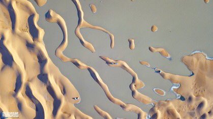 ونشر المصور ثامر الثمیري، عبر حسابه في “تويتر”، الصور التي التُقطت من ارتفاع عبر طائرة درونز المناظر الجمالیة، حیث بدت نقوش مائیة منحوتة في الرمل، تشكلت معها جزر وشواطئ آهلة بالمتنزهین.