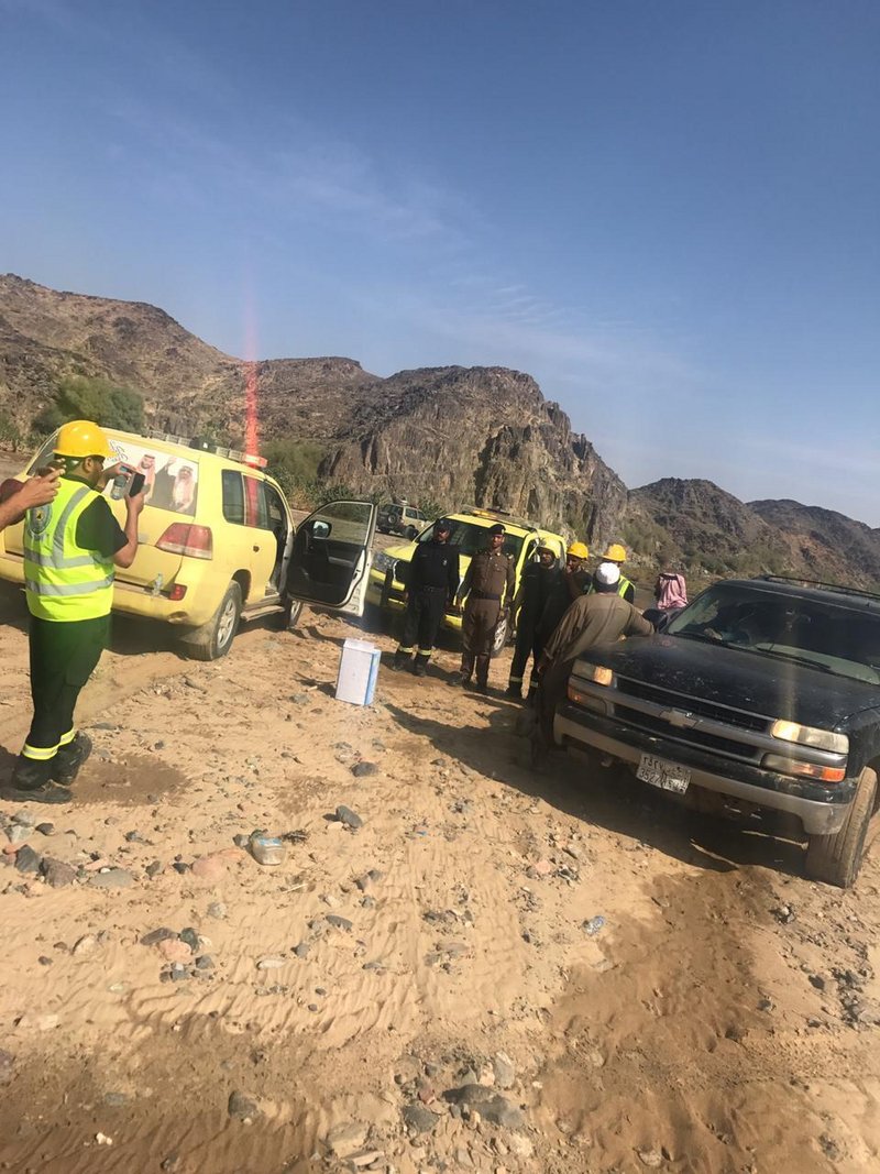 وبیَّن أنه تم الوصول إلیھم عبر طرق مجھولة وغیر معبدة وھم داخل سیارة “جي إم سي”، وتم إخراجھم وھم بصحة جیدة.