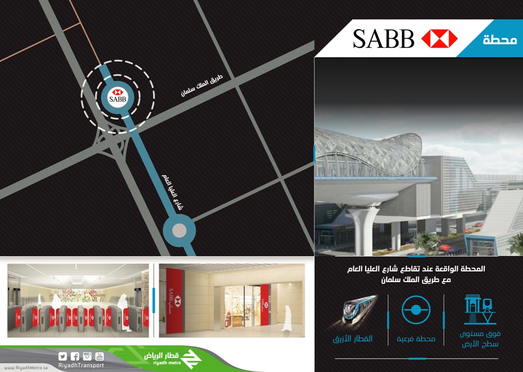 4. البنك السعودي البريطاني (ساب)، فاز بمزايدة حقوق تسمية المحطة الواقعة عند التقاء شارع العليا بطريق الملك سلمان، على المسار الأول.