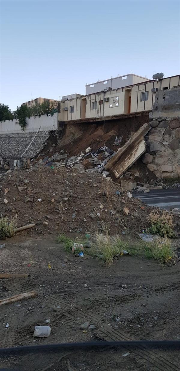 تعرض منزل لخطر السقوط بعد انهیار التربة الموجودة تحته في حي القلت بمحافظة الطائف؛ جراء الأمطار الأخیرة التي شهدتها المحافظة.