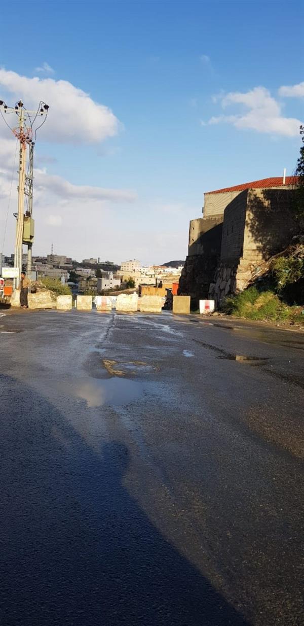 وتم غلق الطريق المقابل للمنزل بحواجز خرسانیة؛ لسلامة مرتادي الطريق، وحمايتهم من أنقاض التربة.