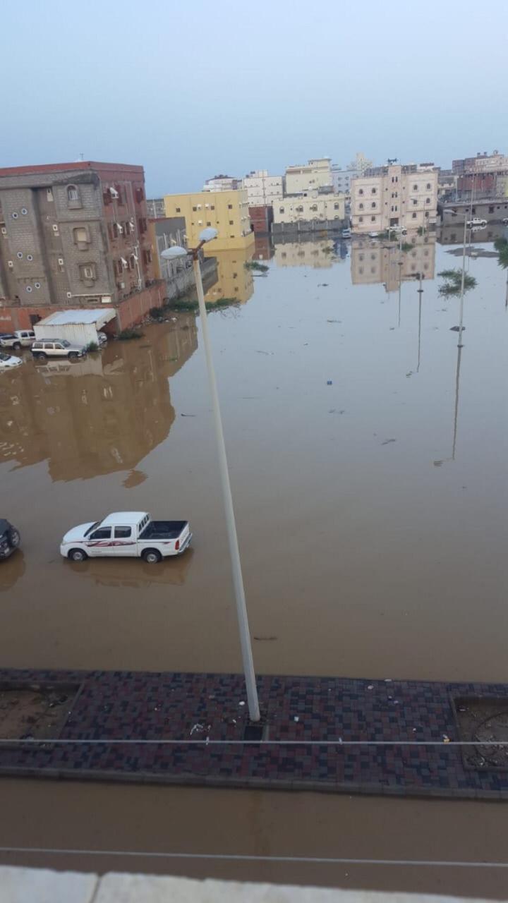 استنفرت فرق الدفاع المدني مدعومة بمائة وخمسين عضواً من فريق السلام للبحث والإنقاذ، بعدما تسببت السيول المنقولة في غرق العديد من الممتلكات الخاصة بسكان محافظة الليث، وخاصة حي الكليبية الذي تضرر بشدة.