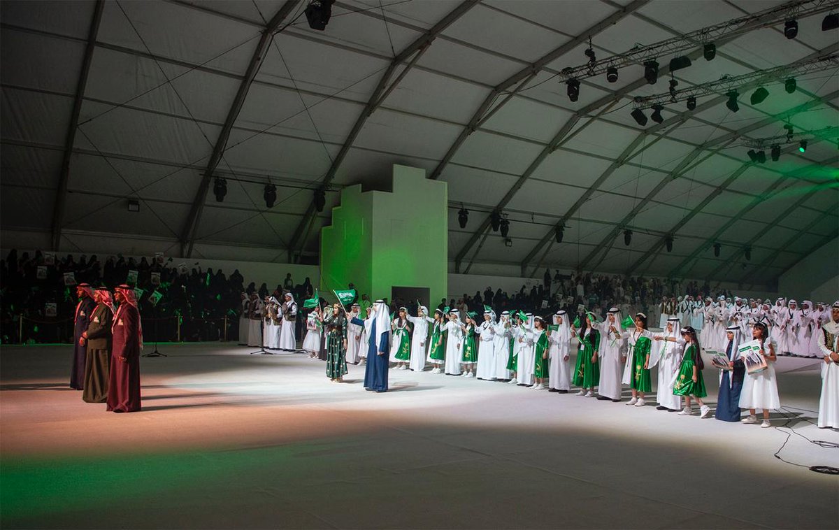 ثم أُديت العرضة السعودية، وشارك فيها خادم الحرمين الشريفين.