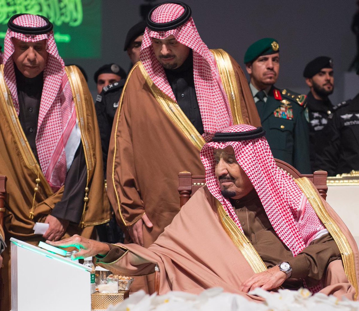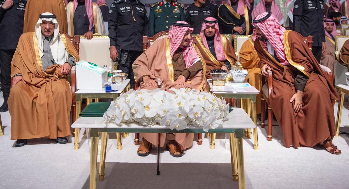 وبعد أن أخذ – حفظه الله – مكانه في المنصة الرئيسة، عُزف السلام الملكي.