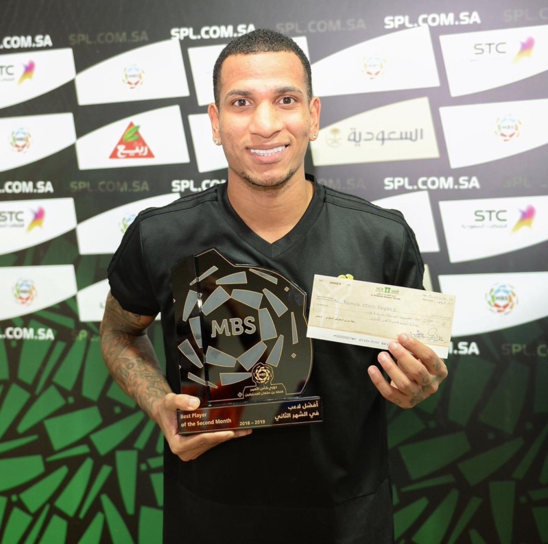 تسلم مدرب فرسان مكة، البرازيلي فابيو كاريلي، ولاعبه الفنزويلي رومولو أوتيرو، جائزتي الأفضل في منافسات كأس دوري الأمير محمد بن سلمان للمحترفين لشهر أكتوبر.
