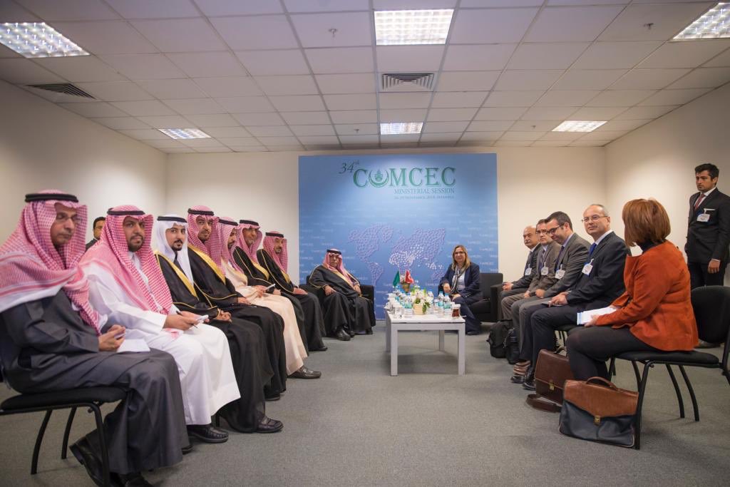 وجددت الوزيرة التركية أثناء اللقاء على هامش اجتماعات الدورة الرابعة والثلاثين للجنة الدائمة للتعاون الاقتصادي والتجاري لمنظمة التعاون الإسلامي “الكومسيك” الدعوة للمستثمرين السعوديين للاستفادة من الفرص التي توفرها تركيا في ظل التسهيلات الحكومية التي تدعم الاستثمار، موضحة أن البيئة جاذبة ومحفزة والعمل على تذليل الصعوبات كافة التي تواجه رجال الأعمال السعوديين.
