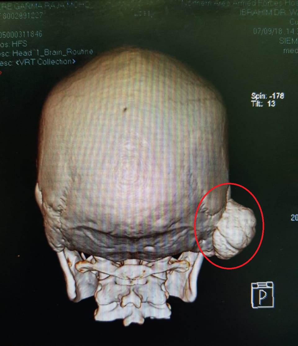 تمكن بفضل الله الفريق الاستشاري بقسم الأنف والأذن والحنجرة بمستشفى حفرالباطن المركزي من استئصال ورم لمريضة كانت تعاني من ورم عظمي حميد في الجمجمة منذ 30 سنة مع نمو بطيء ومتواصل الأمر الذي تسبب لها في وجود آلام وتشوه بسبب حجم الورم.