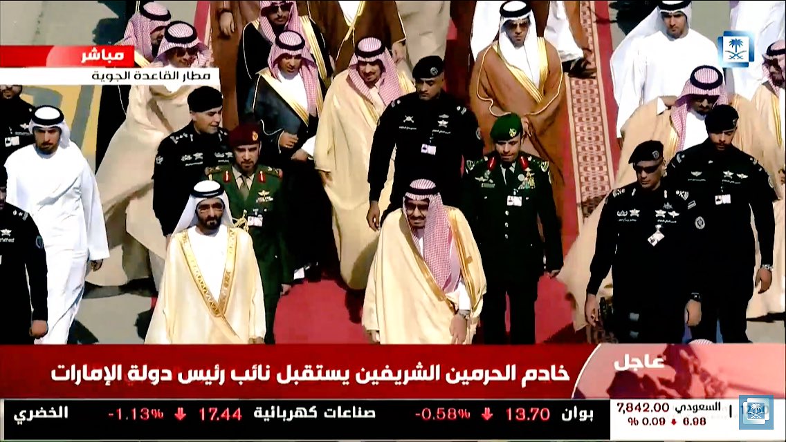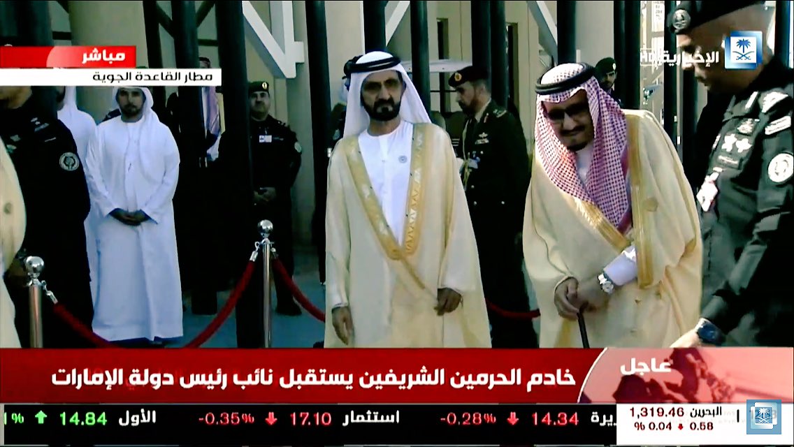 استقبل خادم الحرمين الشريفين، الملك سلمان بن عبدالعزيز، الشيخ محمد بن راشد نائب رئيس الإمارات، رئيس وفد الإمارات إلى القمة الخليجية التي تحتضنها الرياض اليوم.