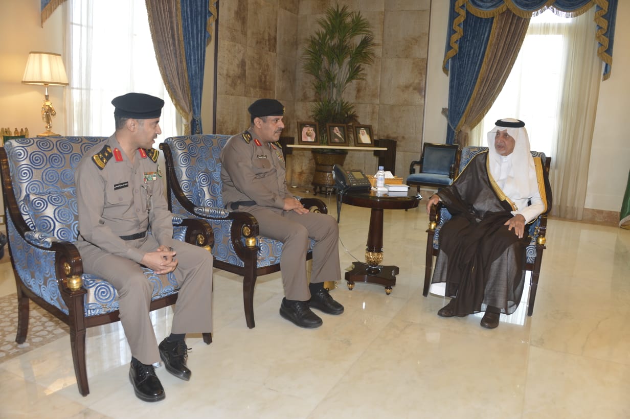 استقبل مستشار خادم الحرمين الشريفين أمير منطقة مكة المكرمة صاحب السمو الملكي الأمير خالد الفيصل في مقر الإمارة، مدير مرور جدة المُعين حديثاً العميد سليمان الجميعي، يرافقه مدير شرطة المنطقة اللواء عبداللطيف الشثري.