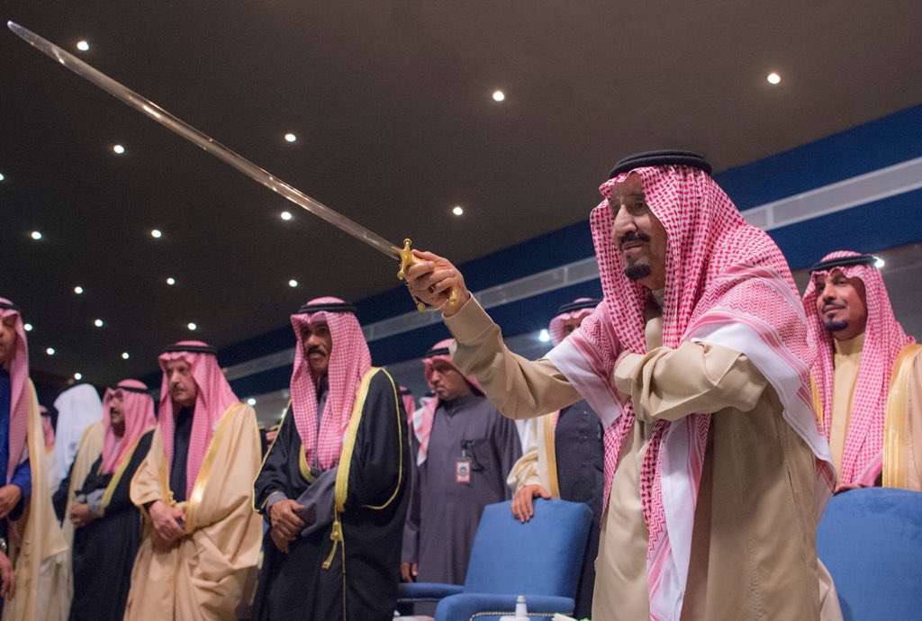 كما شارك خادم الحرمين الشريفين في أداء العرضة السعودية بحفل افتتاح مهرجان الجنادرية في نسخته الـ33.
