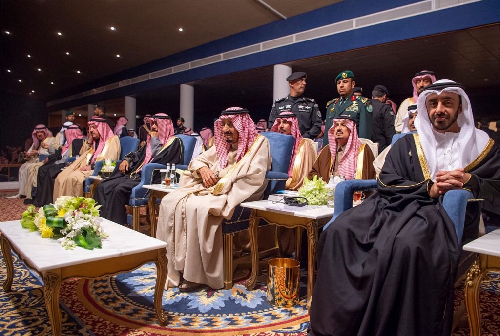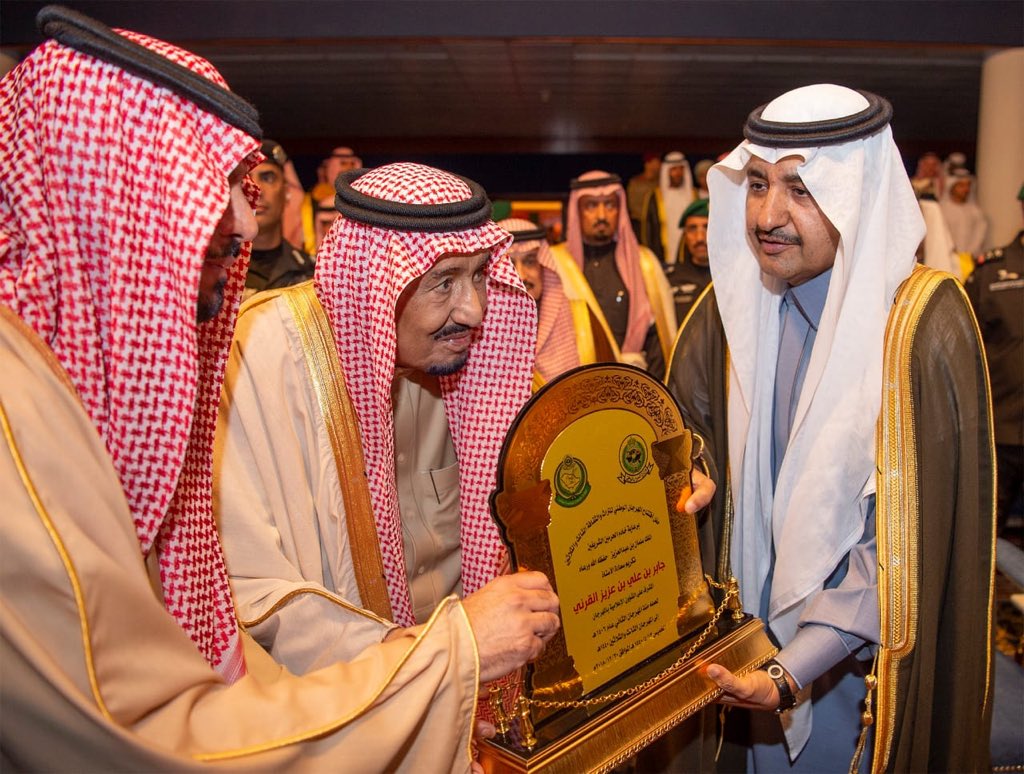وكان خادم الحرمين الشريفين الملك سلمان قد رعى مساء اليوم، فعاليات الحفل الخطابي والفني في مهرجان الجنادرية الذي انطلق اليوم بمشاركة دول خليجية وعربية.