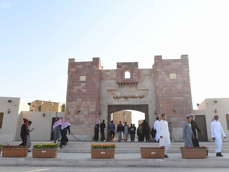 الجدير بالذكر أن قرية منطقة تبوك التراثية تقع على مساحة 6500 متر مربع وتضم البيوت الساحلية, والبيت الصحراوي, والقلاع التراثية, والمعرض, وأماكن للحرفين والحرفيات, إلى جانب المسرح الرئيسي,