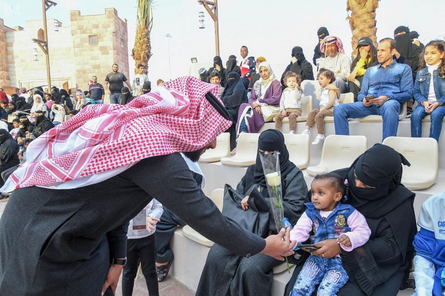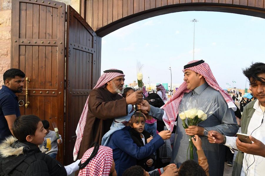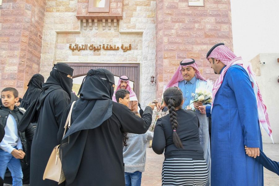 صافحت قرية تبوك التراثية زوارها على أرض الجنادرية، بباقات الورود المتنوعة المقطوفة من مزارع المنطقة الشهيرة.