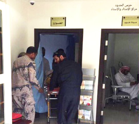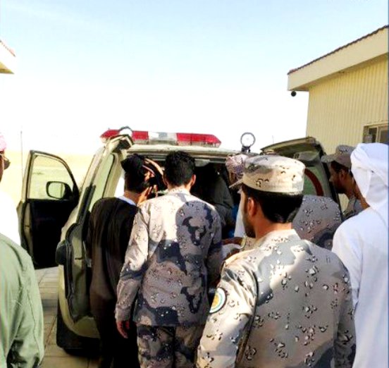 وتم على الفور توجيه دوريات استجابة من مركز الإمداد والإسناد بالربع الخالي لموقع الحادث حيث تم بحمد الله نقلهما لمركز الإمداد والإسناد وتقديم الإسعافات اللازمة للمصابين بالعيادة الطبية في المركز وإخلائهما بطيران الأمن من مركز الإمداد إلى ستشفى قوى الأمن بالدمام لتلقي العلاج.