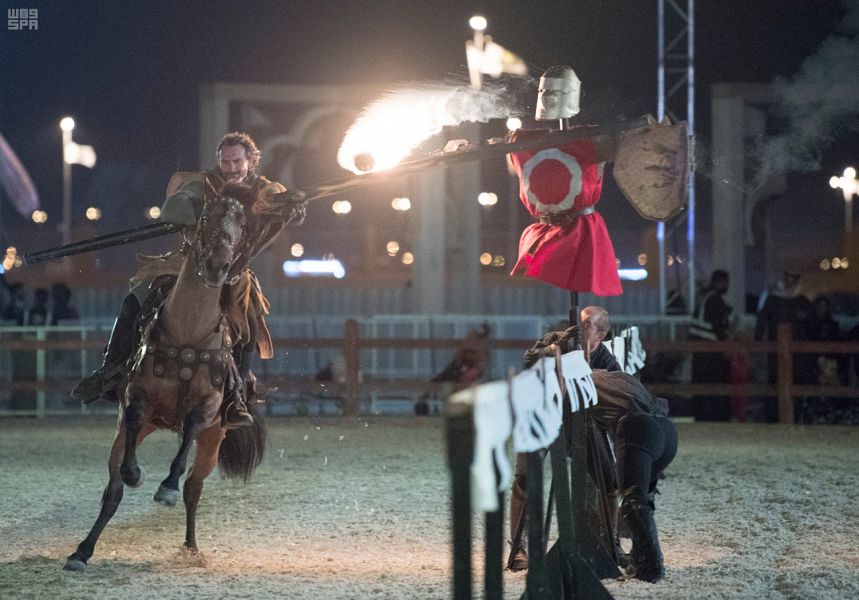 توافد عشاق الخيول والأصالة من زوار المهرجان الوطني للتراث والثقافة على العروض التي يقدمها فريق فرنسي متخصص في استعراضات الفروسية بساحة الفرسان على أرض الجنادرية ضمن فعاليات الهيئة العامة للترفيه بالمهرجان.