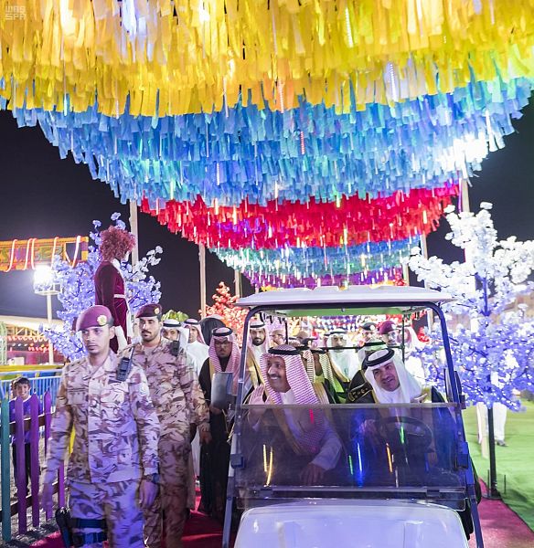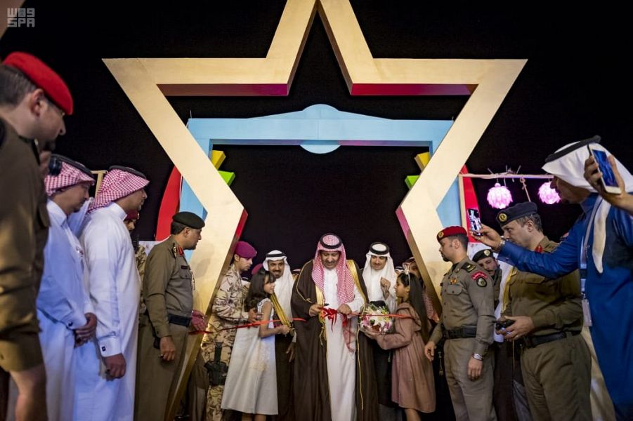 ولدى وصول سموه مقر المهرجان قام بقص الشريط إذاناً بافتتاحه وإطلاق فعالياته التي تستمر ثلاثة أشهر، ثم تجول في أرجاء المهرجان المتضمن معرضًا للدوائر الحكومية وأركانًا تبرز الجانب التراثي وأخرى للتسوق والترفيه ،إلى جانب صالة الإضاءة والصوت.