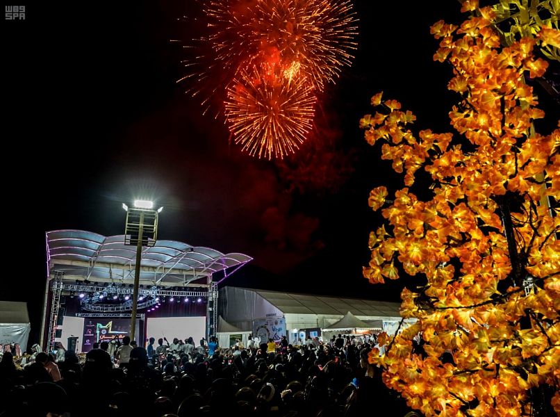 بعد ذلك تابع سمو أمير منطقة الباحة والحضور فقرة إنشادية في حب الوطن ، “وأوبريت” بعنوان “عاشت الباحة ” بمشاركة فرقة تهامة للفنون الشعبية وفرقة الأطفال بالمدينة المنورة ، الذي تضمن العديد من اللوحات الفنية التي تحكي ما شهدته المملكة من تطور وازدهار خاصة في عهد خادم الحرمين الشريفين الملك سلمان بن عبدالعزيز آل سعود – حفظه الله – حيث تحققت قفزات تنموية متسارعة في مختلف المجالات، إلى جانب إبراز ما تتميز به الباحة ومحافظات القطاع التهامي من تنمية وتطور وسياحة ، فيما انطلقت الألعاب النارية لتضيء سماء الحفل.